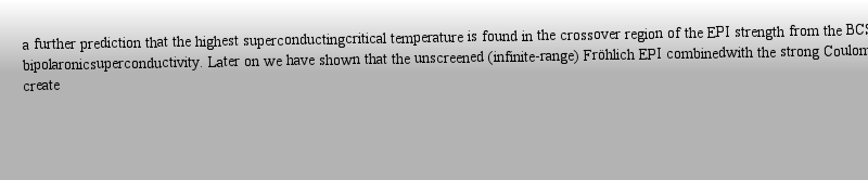 Costas Melakopidesa further prediction that the highest superconductingcritical temperature is found in the crossover region of the EPI strength from the BCS-like to bipolaronicsuperconductivity. Later on we have shown that the unscreened (infinite-range) Fröhlich EPI combinedwith the strong Coulomb repulsion create