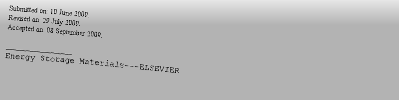 Submitted on: 30 November 2000. Revised on: 14 March 2001. Accepted on: 02 May 2001. ___________________Energy Storage Materials---ELSEVIER