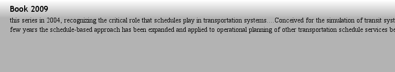 Titlebook: Schedule-Based Modeling of Transportation Networks; Theory and applicati Agostino Nuzzolo,Nigel H. M. Wilson Book 2009 Springer-Verlag US 2 |