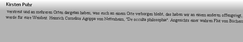 Katrin Hinne verstreut und an mehreren Orten dargetan haben; was euch an einem Orte verborgen bleibt, das haben wir an einem anderen offenge/egt, damit es faßbar werde für eure Weisheit. Heinrich Cornelius Agrippa von Nettesheim, "De occulta philosophia". Angesichts einer wahren Flut von Büchern über Informatik