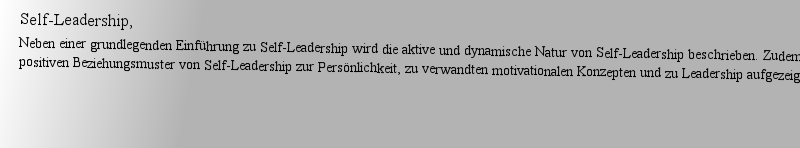 关键词 | Selbstführung; Selbstmanagement; Führung; Leadership; Self-Leadership-Fragebogen |