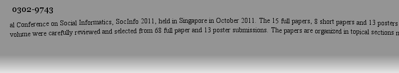 Titlebook: Social Informatics; Third International Anwitaman Datta,Stuart Shulman,Ee-Peng Lim Conference proceedings 2011 Springer-Verlag GmbH Berlin |