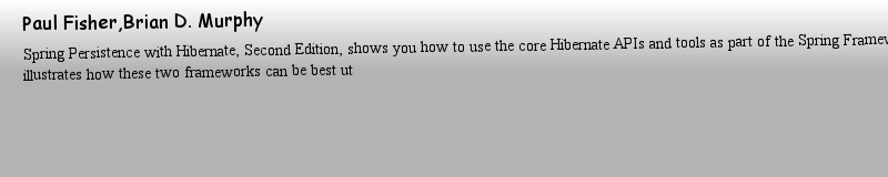 Titlebook: Spring Persistence with Hibernate; Paul Fisher,Brian D. Murphy Book 2016Latest edition Paul Fisher and Brian D. Murphy 2016 Hibernate 5.0. |