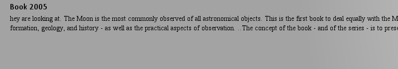 | 概述 | In two parts: (i) a modern comprehensive review of the formation and morphology of the Moon, and (ii) observing techniques for amateur astronomers.The very latest detailed theories and physical descri |