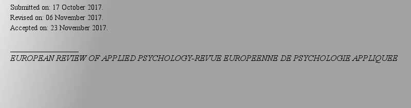 SSCI期刊EUROPEAN REVIEW OF APPLIED PSYCHOLOGY-REVUE EUROPEENNE DE PSYCHOLOGIE APPLIQUEE 2024/2025影响因子:1.313 (EUR REV APPL |