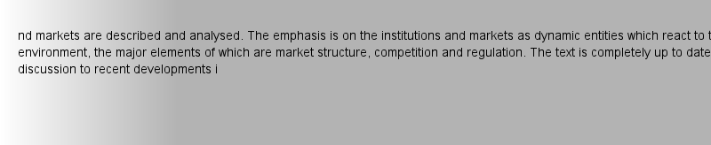 Textbook 1991Latest editionof which are market structure, competition and regulation. The text is completely up to date and devotes discussion to recent developments including the approach to 1992 and European harmonisation, the problems of financial conglomeration, insider dealing, market efficiency and financial innovation.