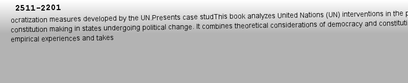 | 概述 | Analyzes UN interventions in the process of constitution making in states undergoing political change.Takes a critical perspective on re-democratization measures developed by the UN.Presents case stud |