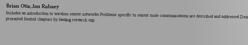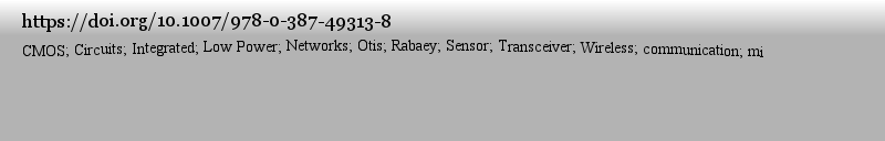 Titlebook: Ultra-Low Power Wireless Technologies for Sensor Networks; Brian Otis,Jan Rabaey Book 2007 Springer-Verlag US 2007 CMOS.Circuits.Integrate |