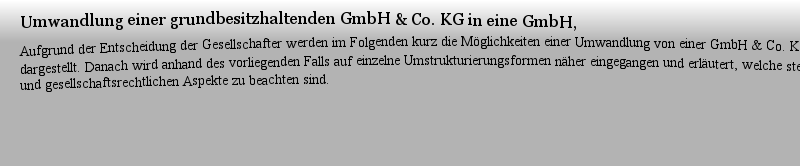 概述 | Umstrukturierungsmöglichkeiten einer grundbesitzhaltenden Gmb. |