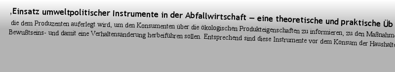 ,Ökonomische Analyse der neuen Abfallgesetzgebung für den Bereich des Verpackungsmülls, revidiert werden so11.. Nach Vorstellung des Verordnungsgebers soll diese Produktverantwortung Maßnahmen der beteiligten Wirtschaftskreise anstoßen und so den Weg für marktwirtschaftliche Lösungen öffnen.