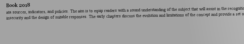 | 书目名称 | Understanding Food Insecurity | | 副标题 | Key Features, Indica | | 编辑 | Maria Sassi | | 视频video | http://file.papertrans.cn/942/941447/941447.mp4 | | 概述 | Equips readers with the knowledge needed to recognize the features of food insecurity and to design suitable responses.Identifies emerging challenges and explores policy lessons from the past.Thorough | | 图书封面 |  | | 描述 | This book provides a comprehensive overview of key aspects of food insecurity, including definitional and conceptual issues, information systems and data sources, indicators, and policies. The aim is to equip readers with a sound understanding of the subject that will assist in the recognition of food insecurity and the design of suitable responses. The early chapters discuss the evolution and limitations of the concept and provide a set of conceptual frameworks for the analysis of food security. Systems used to collect data and their evolution over time are then explained, and the most commonly adopted indicators for monitoring food security are presented. Approaches to food security are then thoroughly reviewed decade by decade. Specific attention is paid to the food insecurity challenge in the new millennium, focusing particularly on recent food crises and institutional and policy-related consequences. Finally, the specific terminology of food aid and assistance is examined, with discussion of the instruments recently adopted in the food aid system. This book will be an informative and stimulating resource for both students and professionals. | | 出版日期 | Book 2018 | | 关键词 | food insecurity; food security data; food security indicators; food security approaches; food policies; n | | 版次 | 1 | | doi | https://doi.org/10.1007/978-3-319-70362-6 | | isbn_softcover | 978-3-319-88925-2 | | isbn_ebook | 978-3-319-70362-6 | | copyright | Springer International Publishing AG 2018 |