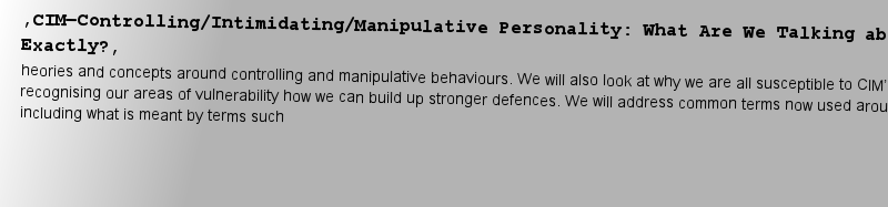 Titlebook: Understanding and Dealing with Controlling, Intimidating and Manipulative Personalities; Martin J Smith Book 2024 The Editor(s) (if applic |