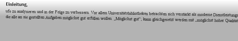 | 书目名称 | Universitätsbibliotheken im Vergleich | | 副标题 | Eine internationale | | 编辑 | Gerhard Reichmann | | 视频video | http://file.papertrans.cn/943/942323/942323.mp4 | | 图书封面 |  | | 描述 | Für die Durchführung von Leistungsvergleichen zwischen Bibliotheken wurden zwar zahlreiche Kennzahlen und Standards entwickelt, doch eignet sich ein Großteil dieser Werkzeuge aufgrund des damit verbundenen Erhebungsaufwandes keinesfalls für eine Evaluierung von Universitätsbibliotheken. Daher stehen auf internationaler Ebene zahlreichen theoretischen Abhandlungen zu dieser Thematik kaum praktische Umsetzungen gegenüber. ..Gerhard Reichmann erstellt in seiner Untersuchung einen internationalen Leistungsvergleich zwischen 132 Universitätsbibliotheken in Österreich, Deutschland, der Schweiz, den USA, Australien und Kanada. Dabei entwickelt er ein Kennzahlensystem, das sich zwar auf bereits vorhandene Kennzahlen stützt, diese aber immer dann abändert bzw. ersetzt, sobald für die Berechnung dieser Kennzahlen nicht weitgehend auf bereits dokumentierte bibliothekarische Leistungsdaten zurückgegriffen werden kann. Eine neu generierte Spitzenkennzahl ermöglicht einen Gesamtleistungsvergleich zwischen den untersuchten Bibliotheken.... | | 出版日期 | Book 2001 | | 关键词 | Auswahl; Bibliothek; Bibliotheken; Bildung; Effizienz; Forschung; Infrastruktur; Kennzahlen; Kosten-Nutzen-A | | 版次 | 1 | | doi | https://doi.org/10.1007/978-3-663-09072-4 | | isbn_softcover | 978-3-8244-0548-0 | | isbn_ebook | 978-3-663-09072-4 | | copyright | Springer Fachmedien Wiesbaden 2001 |