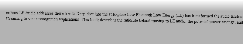 | 书目名称 | Unraveling Bluetooth LE Audio | | 副标题 | Stretching the Limit | | 编辑 | Himanshu Bhalla,Oren Haggai | | 视频video | http://file.papertrans.cn/943/942407/942407.mp4 | | 概述 | Understand the full LE Audio ecosystem including how to use LC3 Codec.Review current and future trends in interoperable wireless audio and see how LE Audio addresses these trends.Deep dive into the st | | 图书封面 |  | | 描述 | .Explore how Bluetooth Low Energy (LE) has transformed the audio landscape, from music streaming to voice recognition applications. This book describes the rationale behind moving to LE audio, the potential power savings, and how various specifications need to be linked together to develop a final end product. ..LE Audio is a natural development of the Bluetooth audio standard. The standard is spread across more than a dozen different specifications, from application profiles, down to the core transports in both Host part and Controller part. You‘ll see how this new architecture of the Bluetooth audio stack defines a LE Audio stack from the Core Controller to the Host Protocols, and Profiles...You’ll also learn how to free yourself from wires and charging. LE Audio introduces a new audio compression codec called LC3 (Low Complexity Communication Codec), which covers sampling rates for the full range of voice and media application at high fidelity, lowcomplexity and low bit-rate and is ideal for new applications – such as voice assistance and gaming...Unraveling Bluetooth Low Energy Audio. provides full context to anyone who is curious to learn about the new LE Audio technology..Wha | | 出版日期 | Book 2021Latest edition | | 关键词 | Bluetooth; LE; Low energy; Audio; Fusion; Speaker; Microphone; Hearing aid; Headset; Streaming; Voice; Music; Te | | 版次 | 1 | | doi | https://doi.org/10.1007/978-1-4842-6658-8 | | isbn_softcover | 978-1-4842-6657-1 | | isbn_ebook | 978-1-4842-6658-8 | | copyright | Himanshu Bhalla, Oren Haggai 2021 |