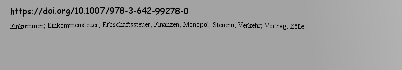 Titlebook: Unsere Finanzen nach dem Kriege; R. Kuczynski Book 1917 Springer-Verlag Berlin Heidelberg 1917 Einkommen.Einkommensteuer.Erbschaftssteuer. |