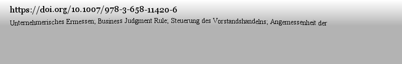 Titlebook: Unternehmerische Entscheidung und Risikomanagement; Vorstandsermessen im Thomas Brauchle Book 2016 Springer Fachmedien Wiesbaden 2016 Unter |