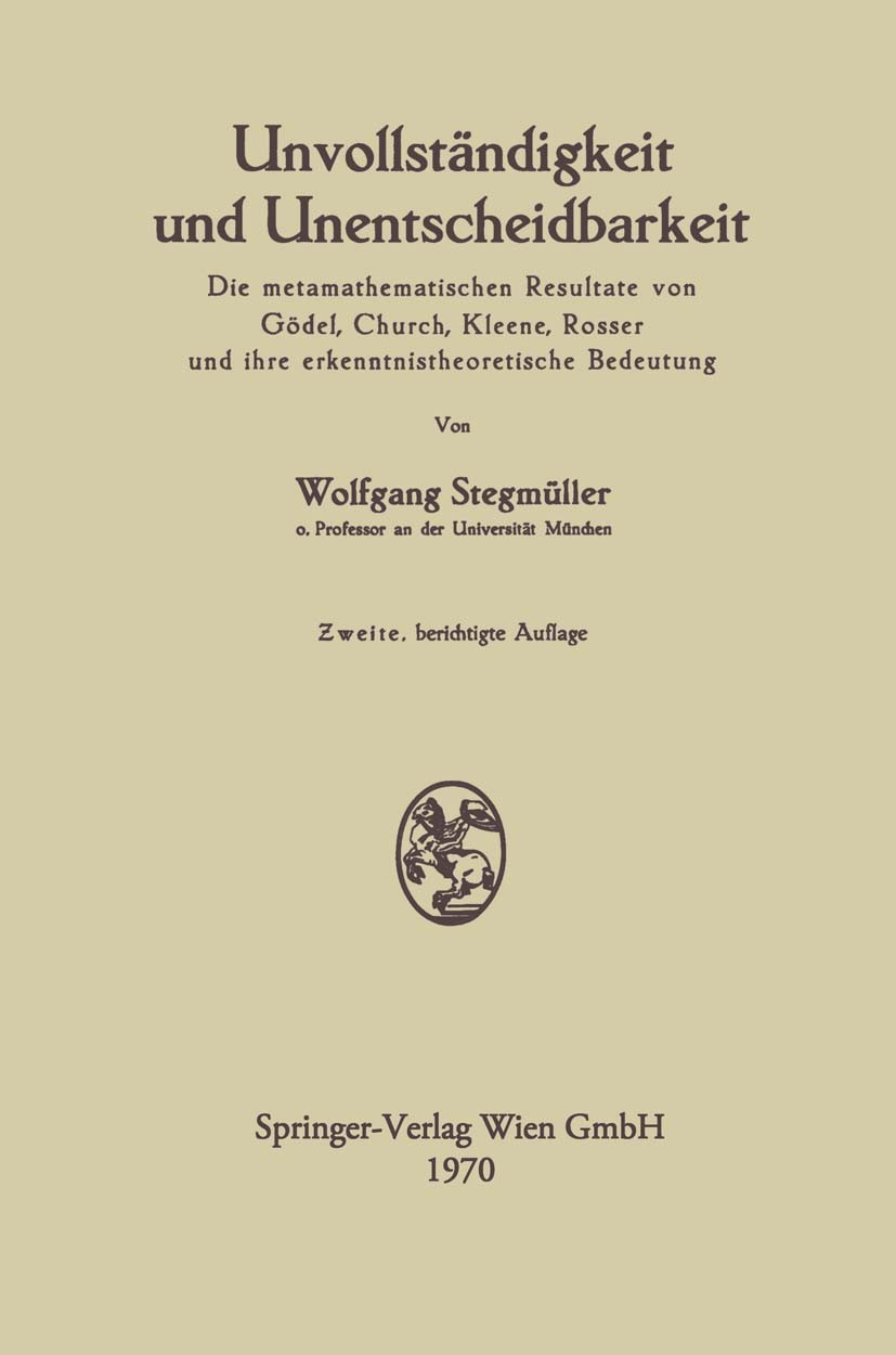 Titlebook: Unvollständigkeit und Unentscheidbarkeit; Die metamathematisch Wolfgang Stegmüller Book 19702nd edition Springer-Verlag Vienna 1970 Entsche |