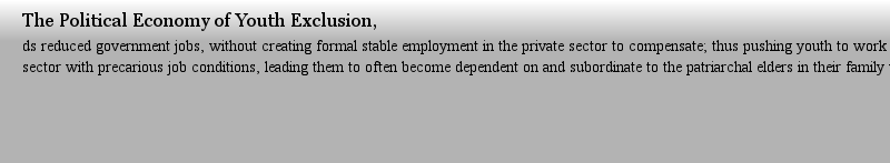 Titlebook: Urban Youth Unemployment, Marginalization and Politics in MENA; Rawan Asali Nuseibeh Book 2022 The Editor(s) (if applicable) and The Autho |