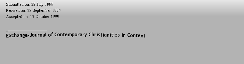 Submitted on: 06 October 2000. Revised on: 06 December 2000. Accepted on: 17 December 2000. ___________________Exchange-Journal of Contemporary Christianities in Context