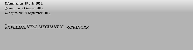 | 期刊全称 | EXPERIMENTAL MECHANICS | | 期刊简称 | EXP MECH | | 影响因子2024 | 2.116 | | 视频video | http://file.papertrans.cn/10/9524/9524.mp4 | | ISSN | 0014-4851 | | eISSN | 1741-2765 | | 出版商 | SPRINGER | | 发行地址 | ONE NEW YORK PLAZA, SUITE 4600 , NEW YORK, United States, NY, 10004 | | 学科分类 | 1.Science Citation Index Expanded (SCIE)--Materials Science, Multidisciplinary | Mechanics | Materials Science, Characterization, Testing; 2.Current Contents Engineering, Computing & Technology--Mechanical Engineering; 3.Essential Science Indicators--Engineering; | | 出版语言 | English |